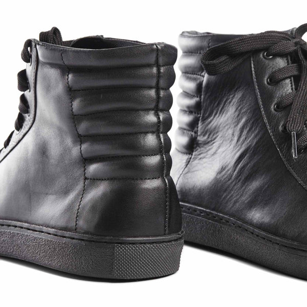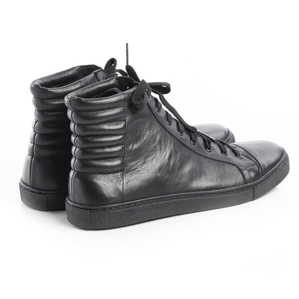 The Oden high top Sneaker has been made from the best locally sourced leather hides and components. It features a full leather upper, inner and sock and has been placed on a full rubber extremely durable S.P.C.C branded bucket sole. Some of the finer details include quilting, and cut and sew panels on the back heel, tonal plastic eyelets, waxed cotton laces, S.P.C.C embossing on the tongue.